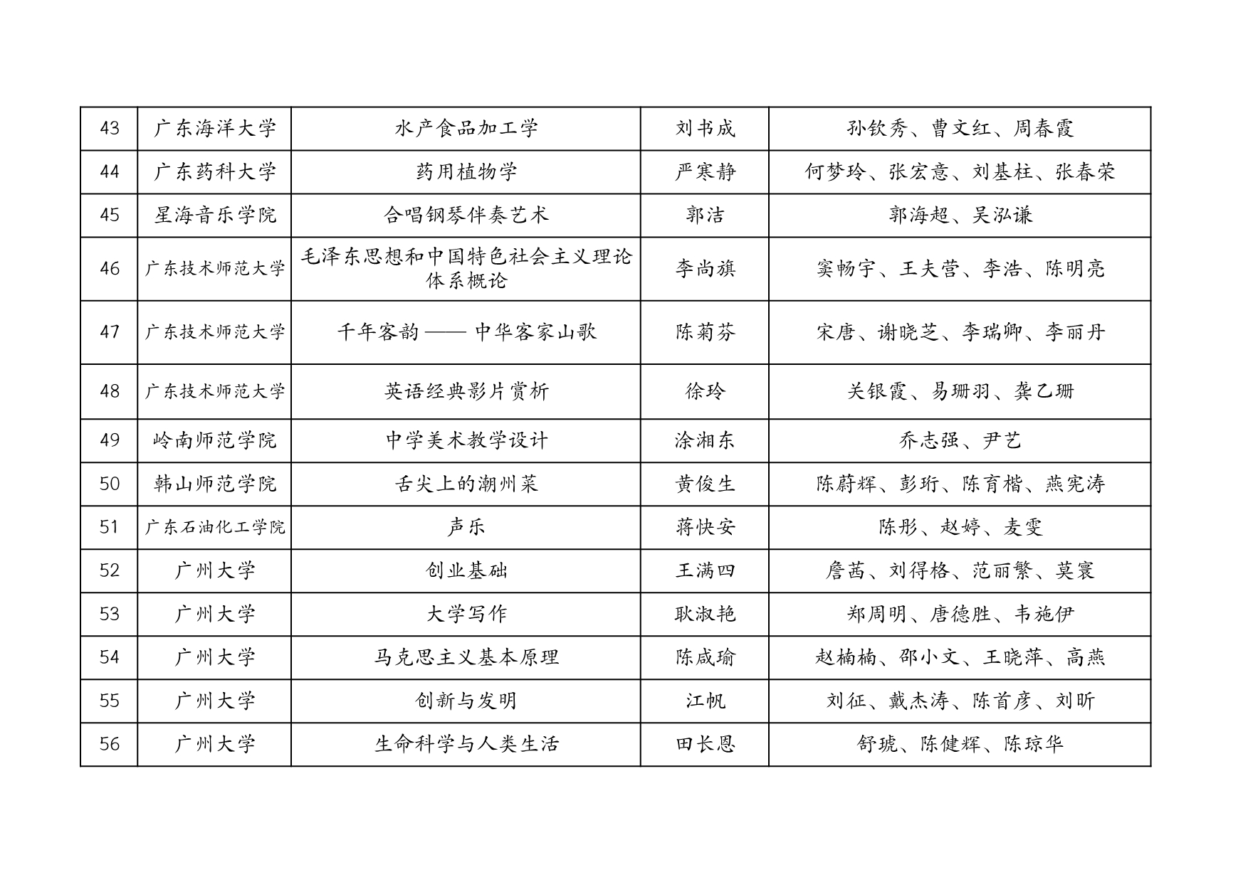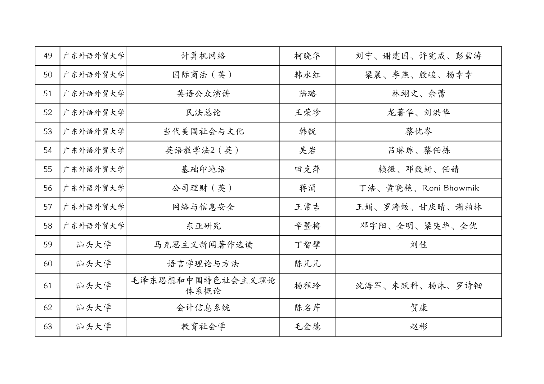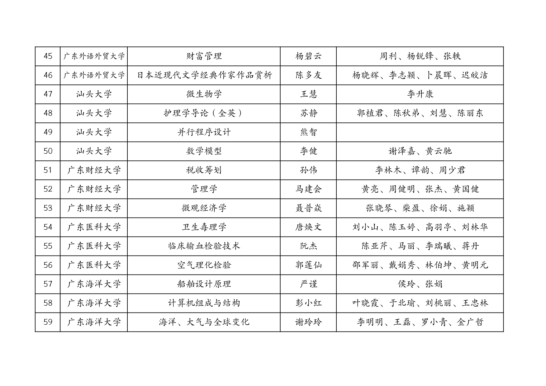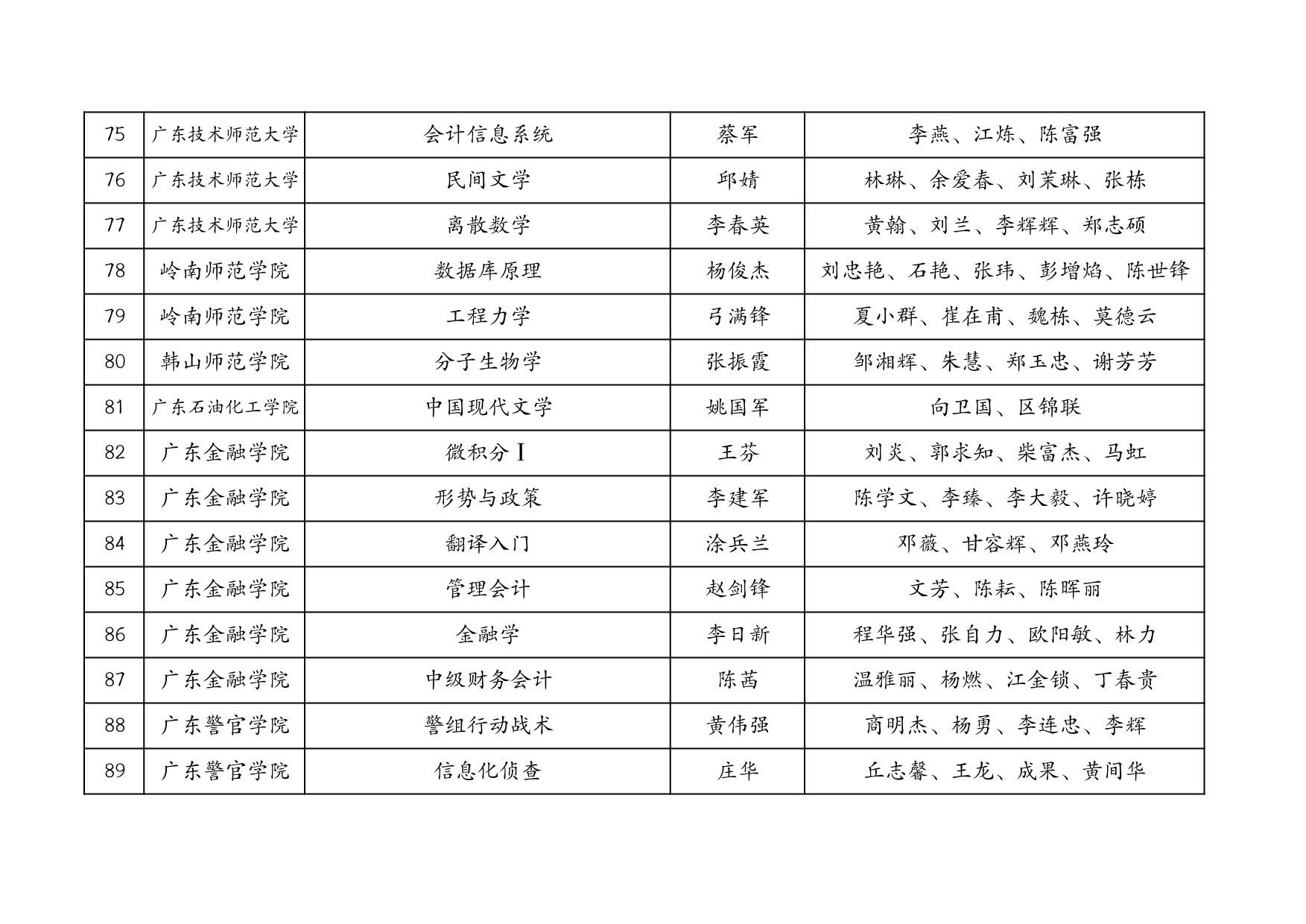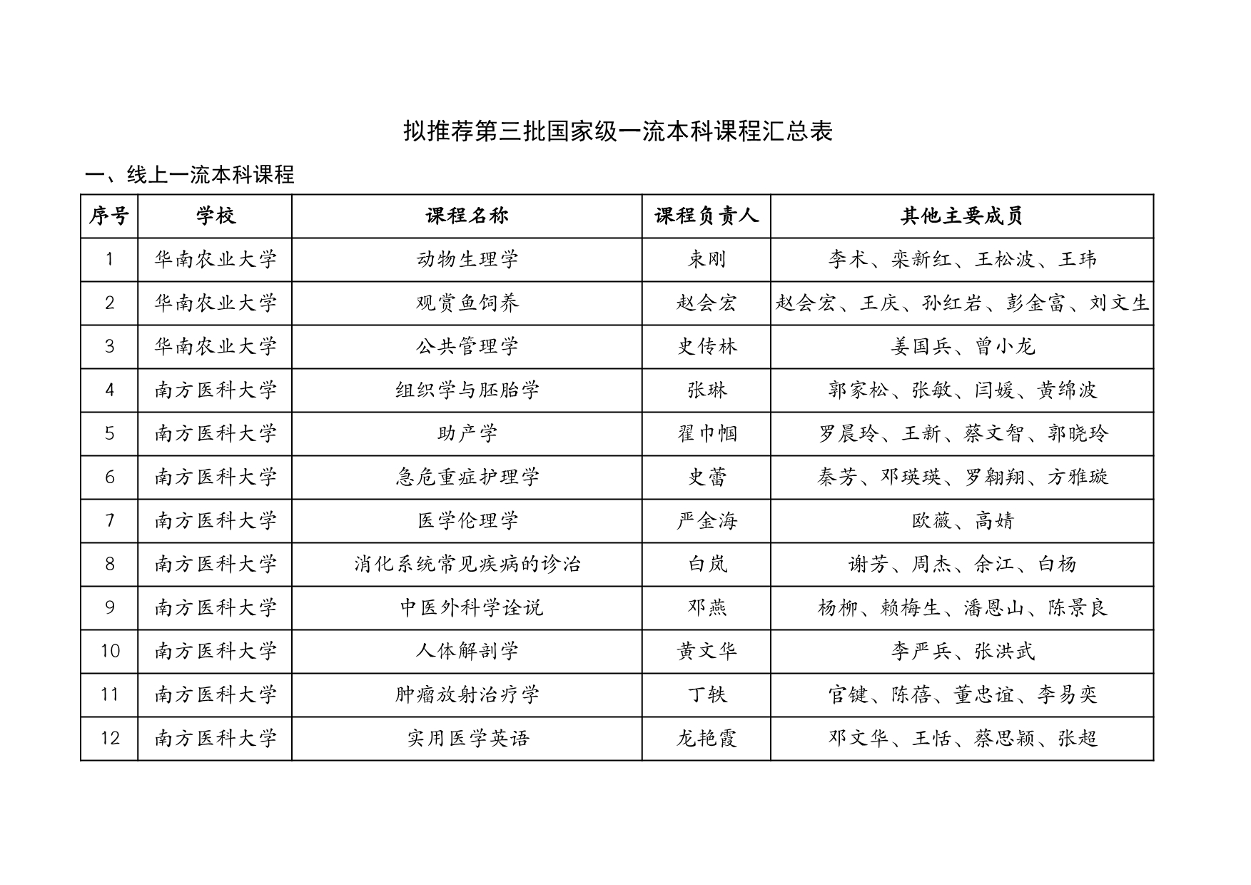 附表:廣東省擬推薦第三批國家級一流本科課程匯總表