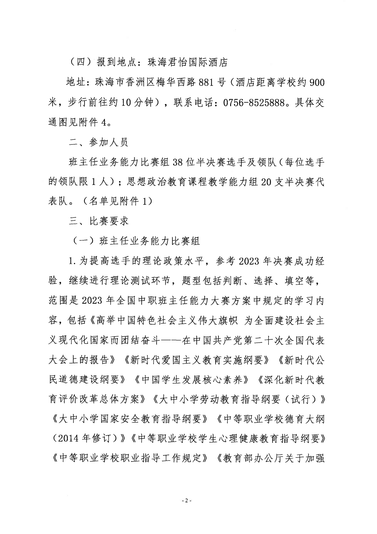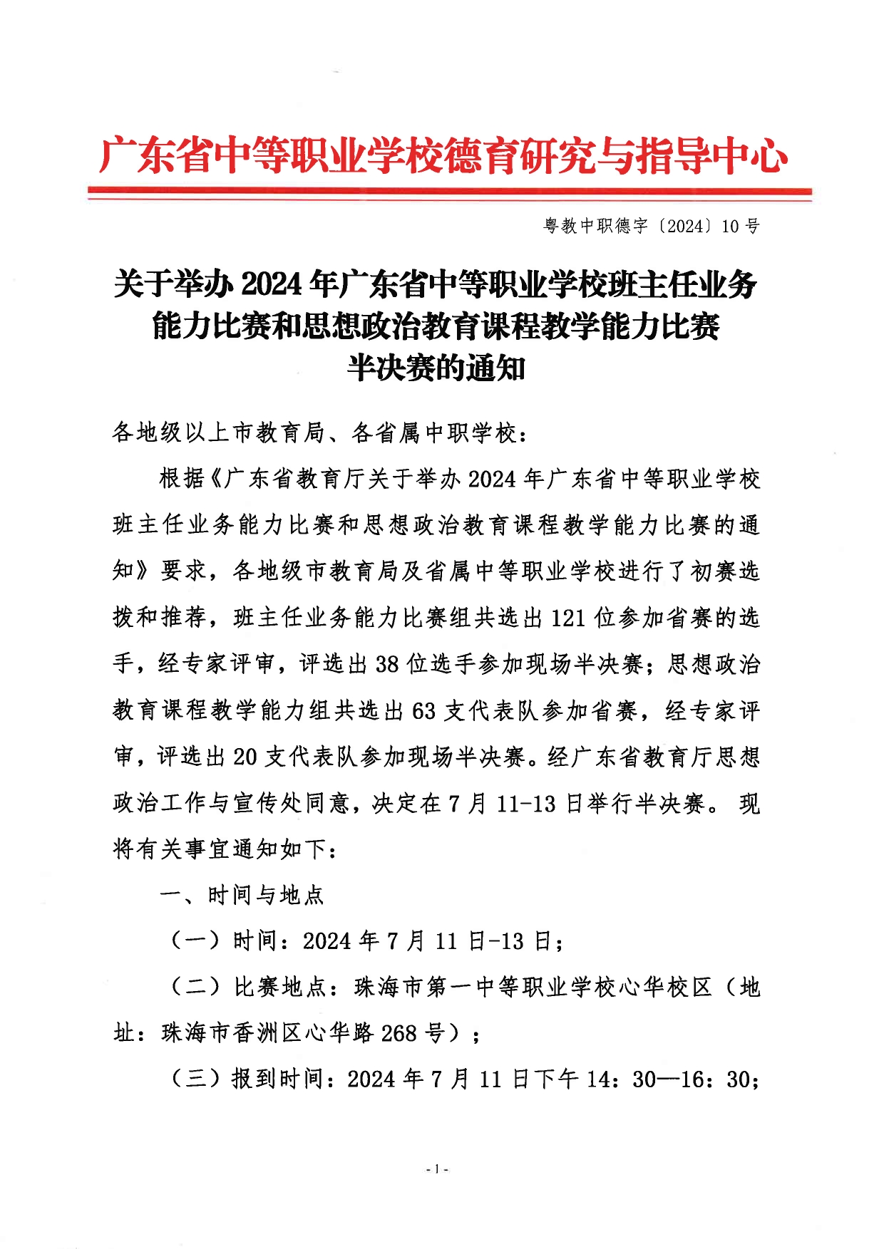 關(guān)于舉辦2024年廣東省中等職業(yè)學(xué)校班主任業(yè)務(wù)能力比賽和思想政治教育課程教學(xué)能力比賽半決賽的通知