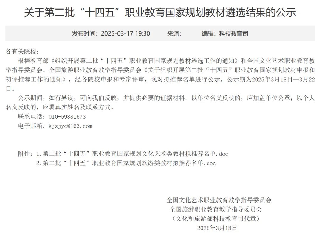 附件1:第二批“十四五”職業教育國家規劃文化藝術類教材擬推薦名單