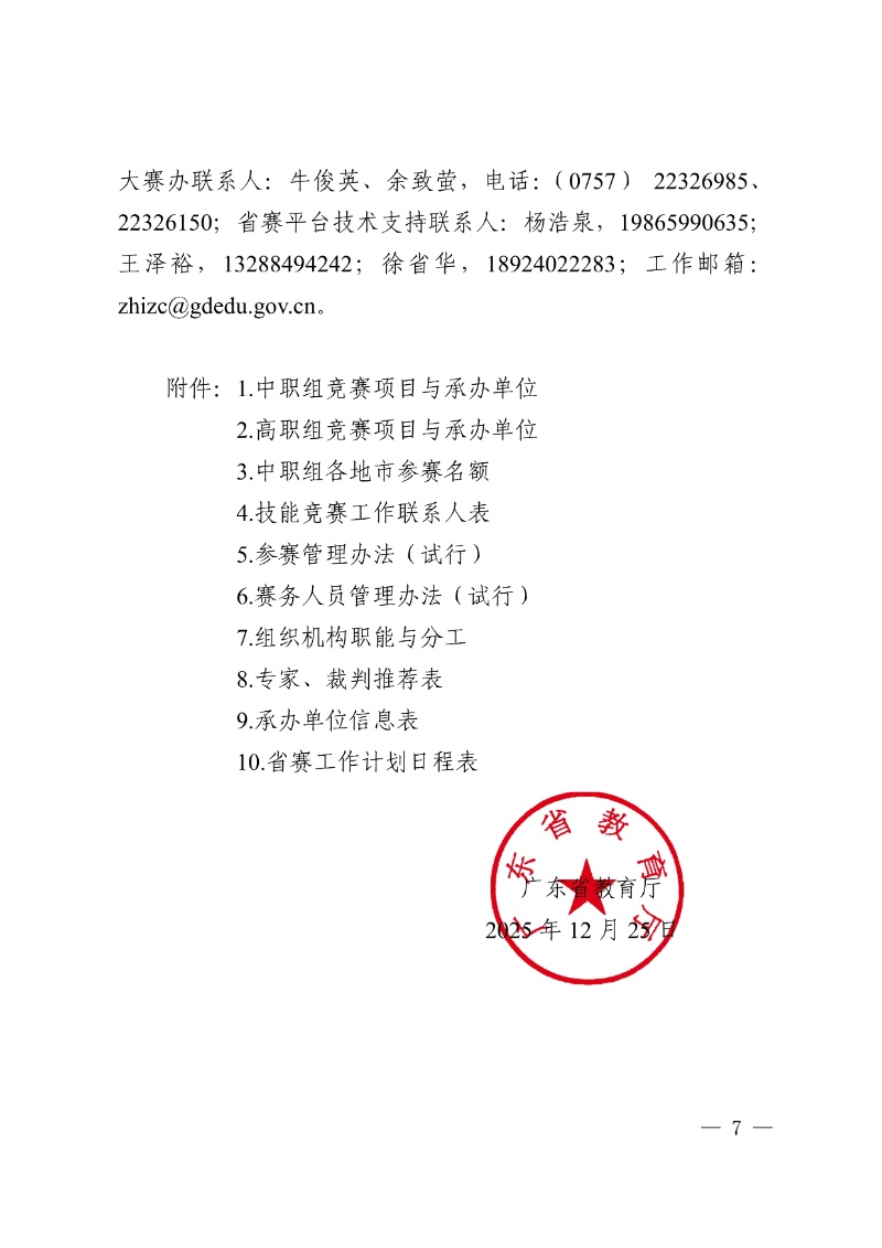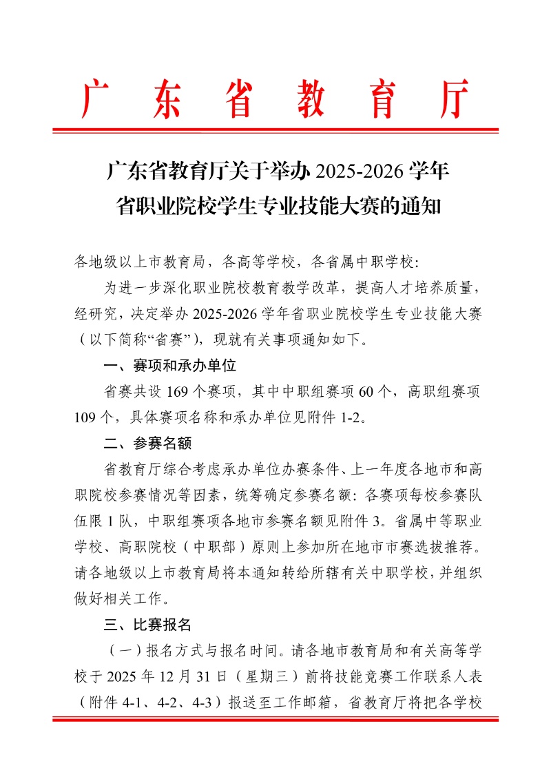 廣東省教育廳關于舉辦2025-2026學年省職業院校學生專業技能大賽的通知